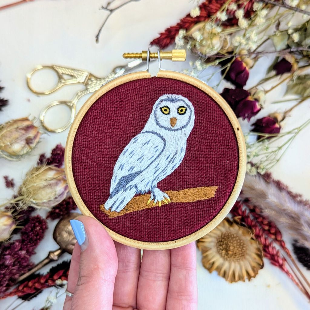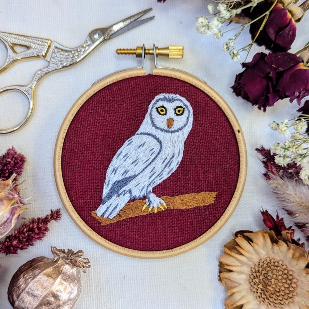 Stitch your own Snowy Owl with a beginner's embroidery kit!