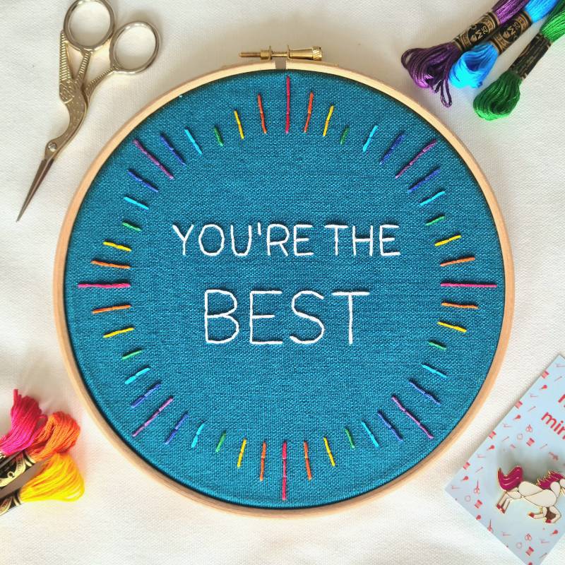 Want to tell someone that they're truly, simply, the best? Spread some positivity and light with this tip top embroidery kit.