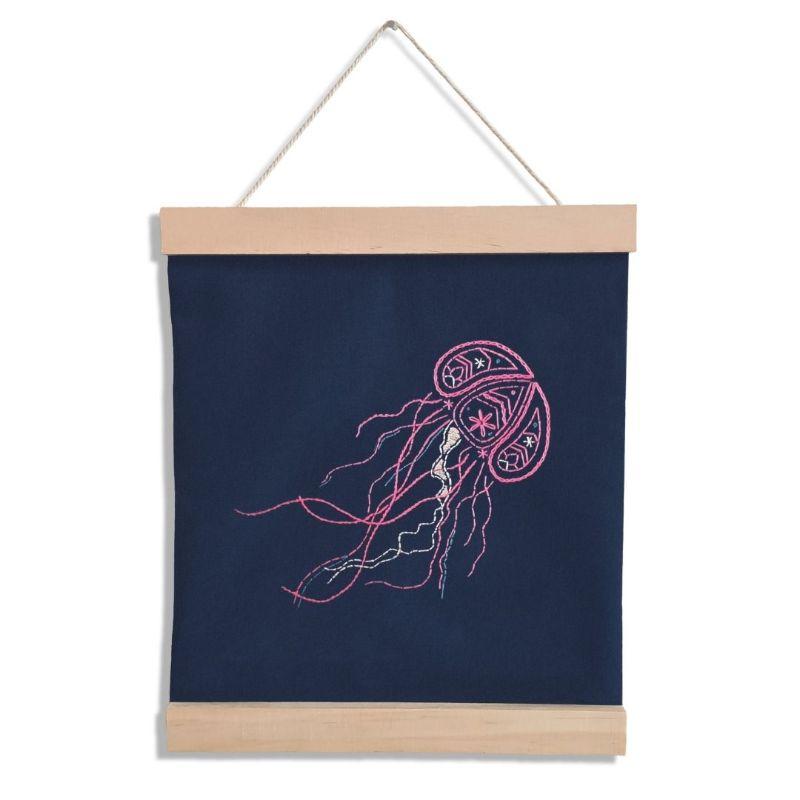 This Jellyfish banner embroidery kit is perfect for beginners who want to learn how to do hand embroidery.