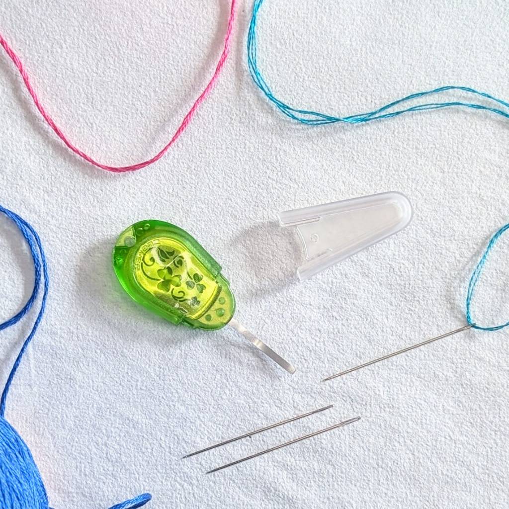 They've got a metal loop that you can slip through the needle eye - it's small but sturdy, and so much easier to get it through the eye! Once the loop is through the eye, just loop your thread through the metal loop - then pull the metal loop out of your thread and needle, and voila - needle threaded!